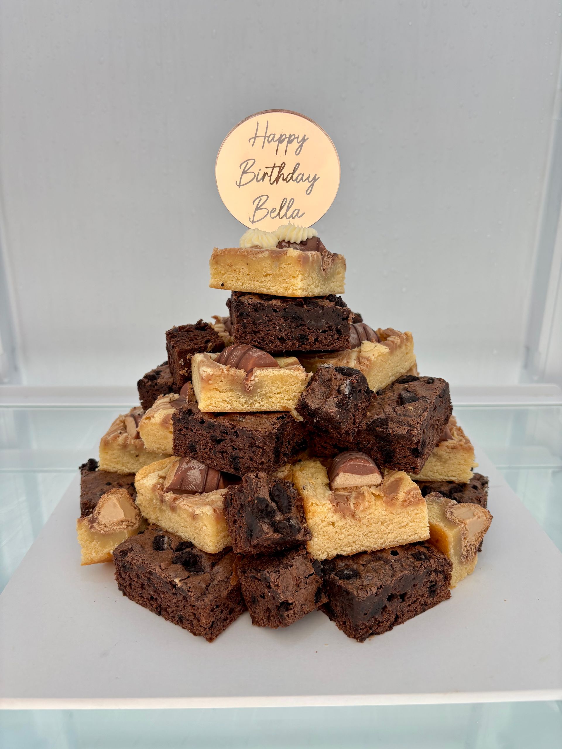 Celebrating a birthday and cake isn't your thing? What about a customised brownie/blondie stack?